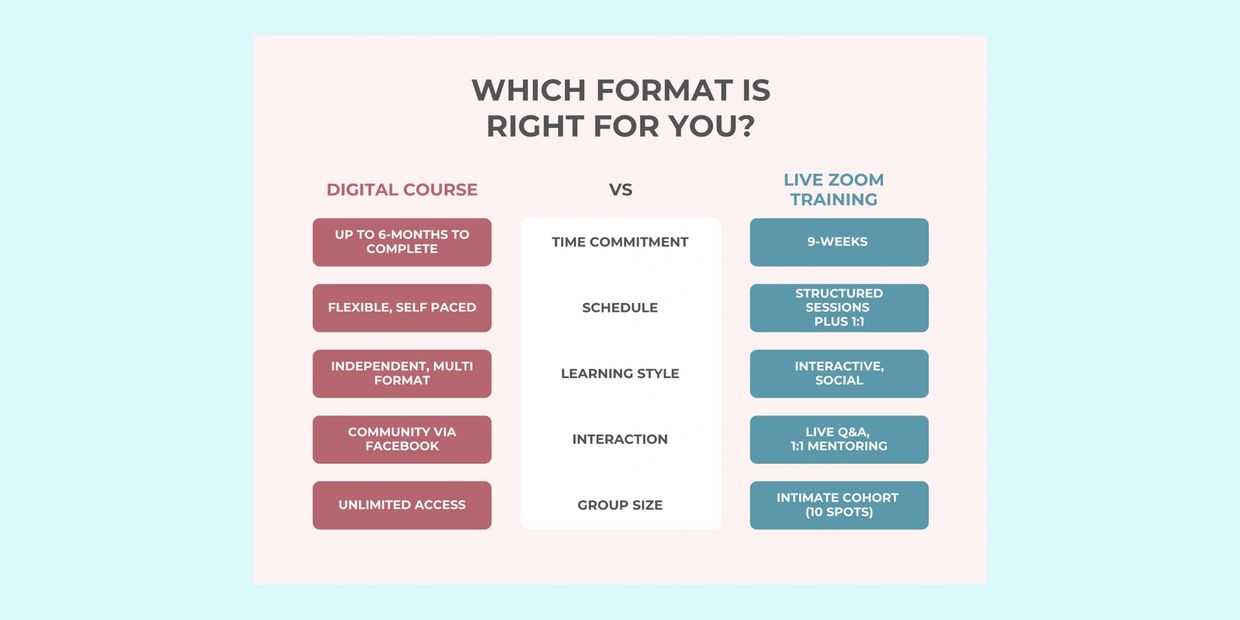 No pre-requisites. This digital format is ideal for self-motivated learners who prefer independent study, enjoy revisiting materials at their own pace, and thrive with written, audio, or video-based instruction. If you like to learn in bite-sized chunks over time, this is for you.